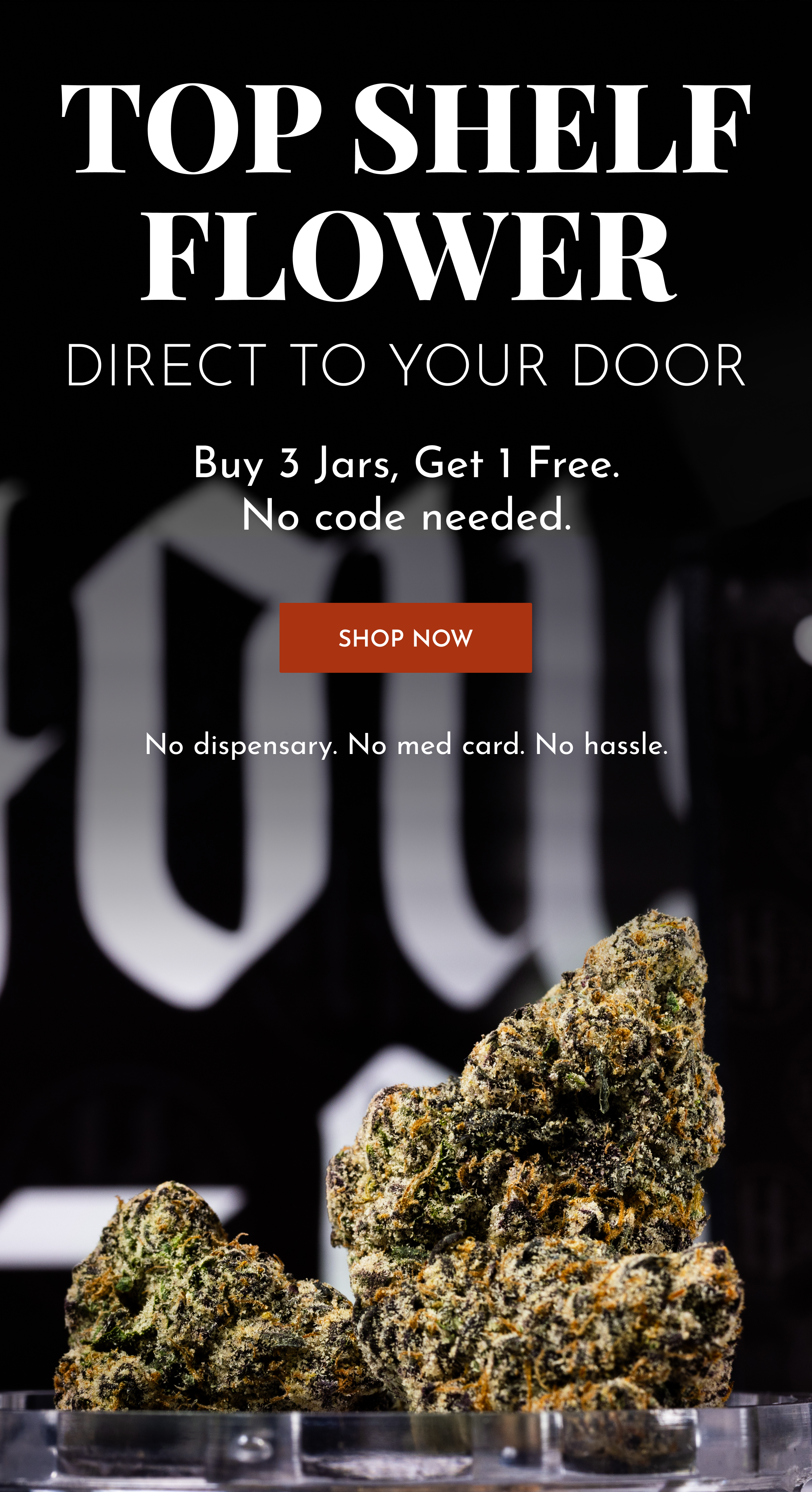 No. Anyone 21+ can order. No card, no dispensary trip, no hassle.